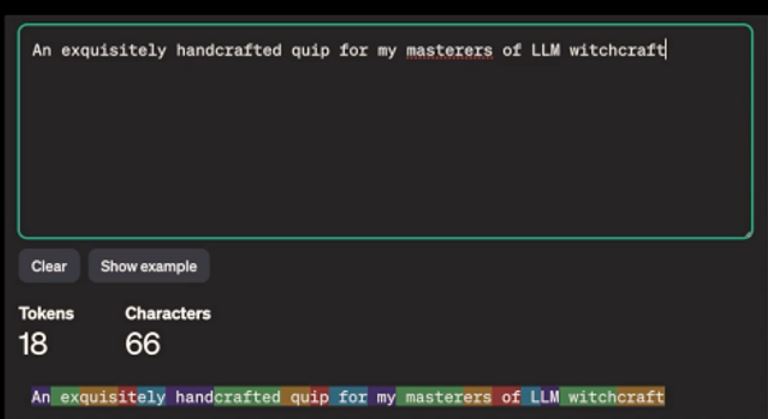 In the following image, in the colored section at the bottom, we can see how words are divided into tokens. Each of these pieces has its own ID number.